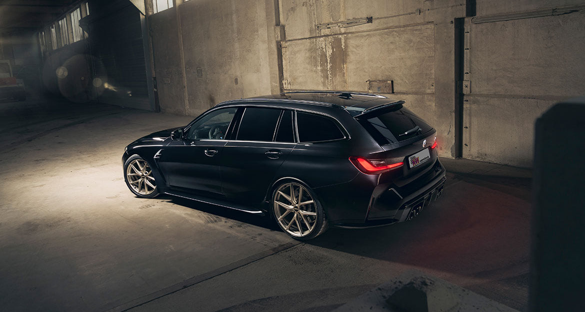 One of the major strengths of the M3 Touring is its driving dynamics. The built-in active M differential at the rear axle in combination with our KW V4 coilover kit leads to more stability and traction on the street. This way the vehicle can react to different driving situations and stays controllable even with high speeds and difficult street conditions.