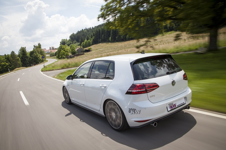 The KW Clubsport coilovers, available in KW Clubsport 2-way (independent rebound and compression adjustment with 16 clicks in rebound and 12 clicks in compression damping) and KW Clubsport 3-way (adjustable in 6 clicks in low-speed and 14 clicks in high-speed compression damping as well as 16 clicks in rebound), differentiate from conventional sport suspensions and coilovers by their high performance dampers. Of course, the KW Clubsport coilovers with their aluminum Unibal top mounts are street legal are the ideal performance suspension for all VW Golf drivers who regularly take part at track days and want to be competitive.