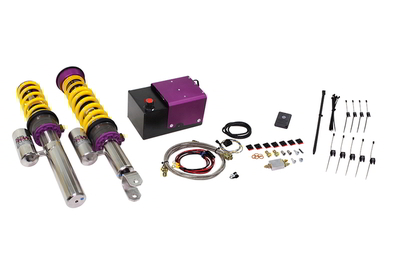 With our KW Hydraulic Lift System (HLS), the driver can overcome those obstacles without any damage. The HLS system lifts the vehicle by up to 45 millimeters at speeds of up to 80 km/h with the press of a button. Our KW HLS system is available as a complete suspension kit from KW Suspensions or as a retrofit solution for the original suspension of the car (depending on the vehicle type and application). Our latest revision is called HLS Evolution. It comes with a revised pump and is currently only available for lifting the front axle.